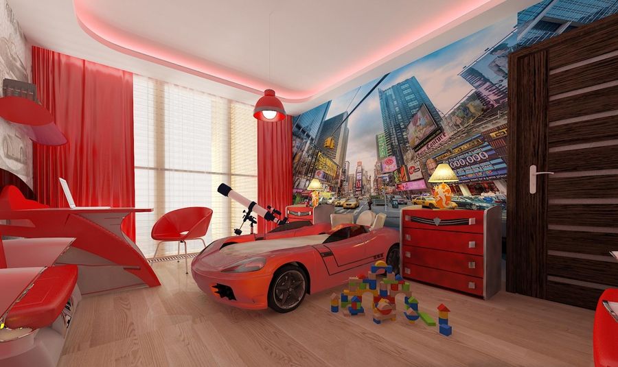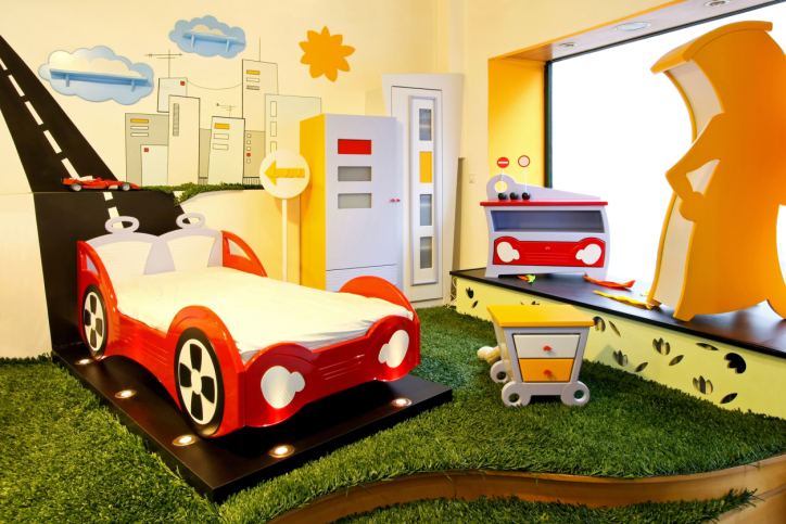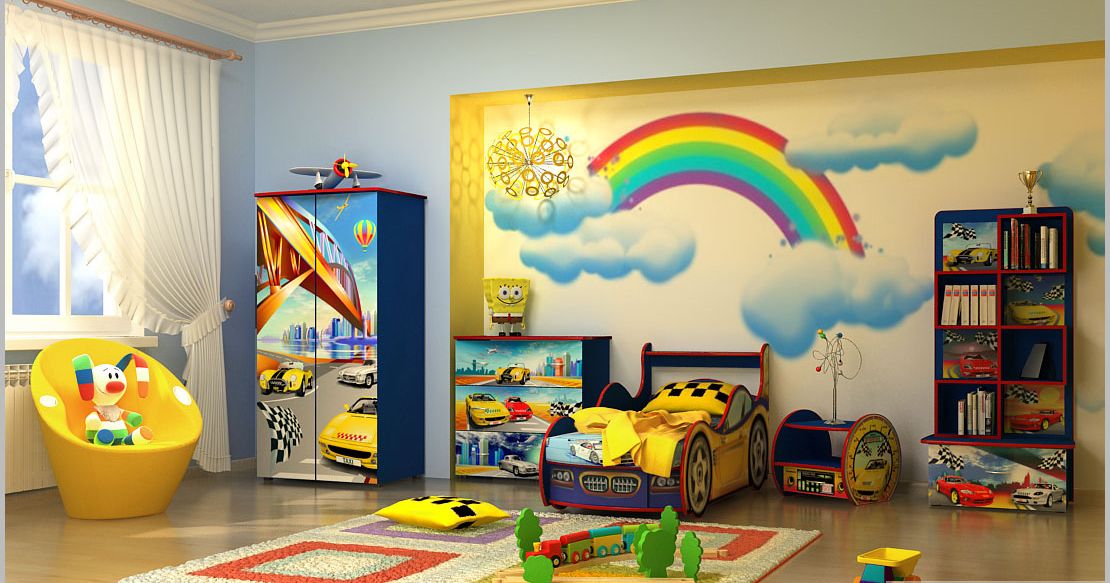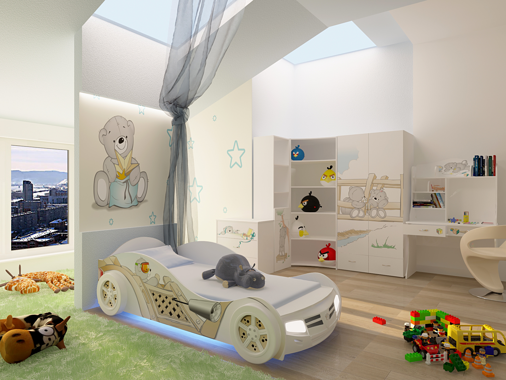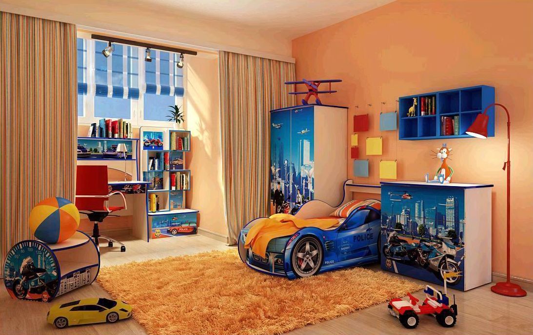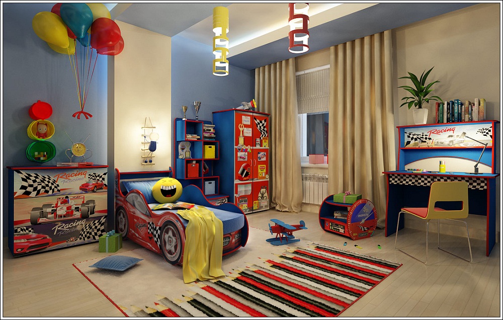 The design of the children's room should match the bed - typewriter. The room should be framed in the same color as the bed; there should be no sharp corners and projections. Children's room must first be safe.