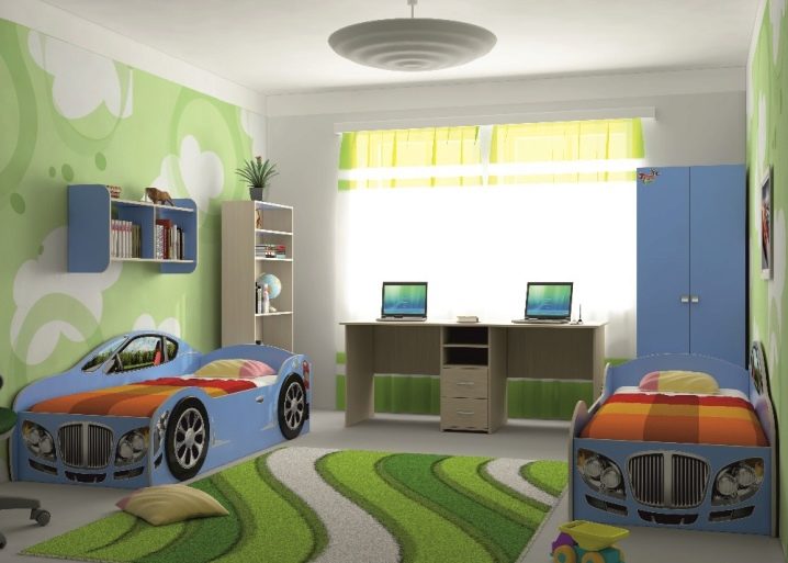 If in the children's room the walls are painted green, then the bed can be chosen blue or dark green.Curtains should also be blue or green shades.