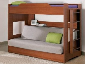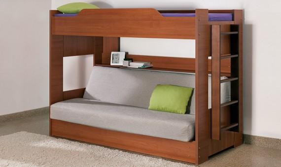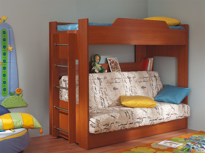 Another option for the Minima bunk bed is the first tier in the form of a sofa that can be folded. The sofa is a full berth thanks to an orthopedic mattress.