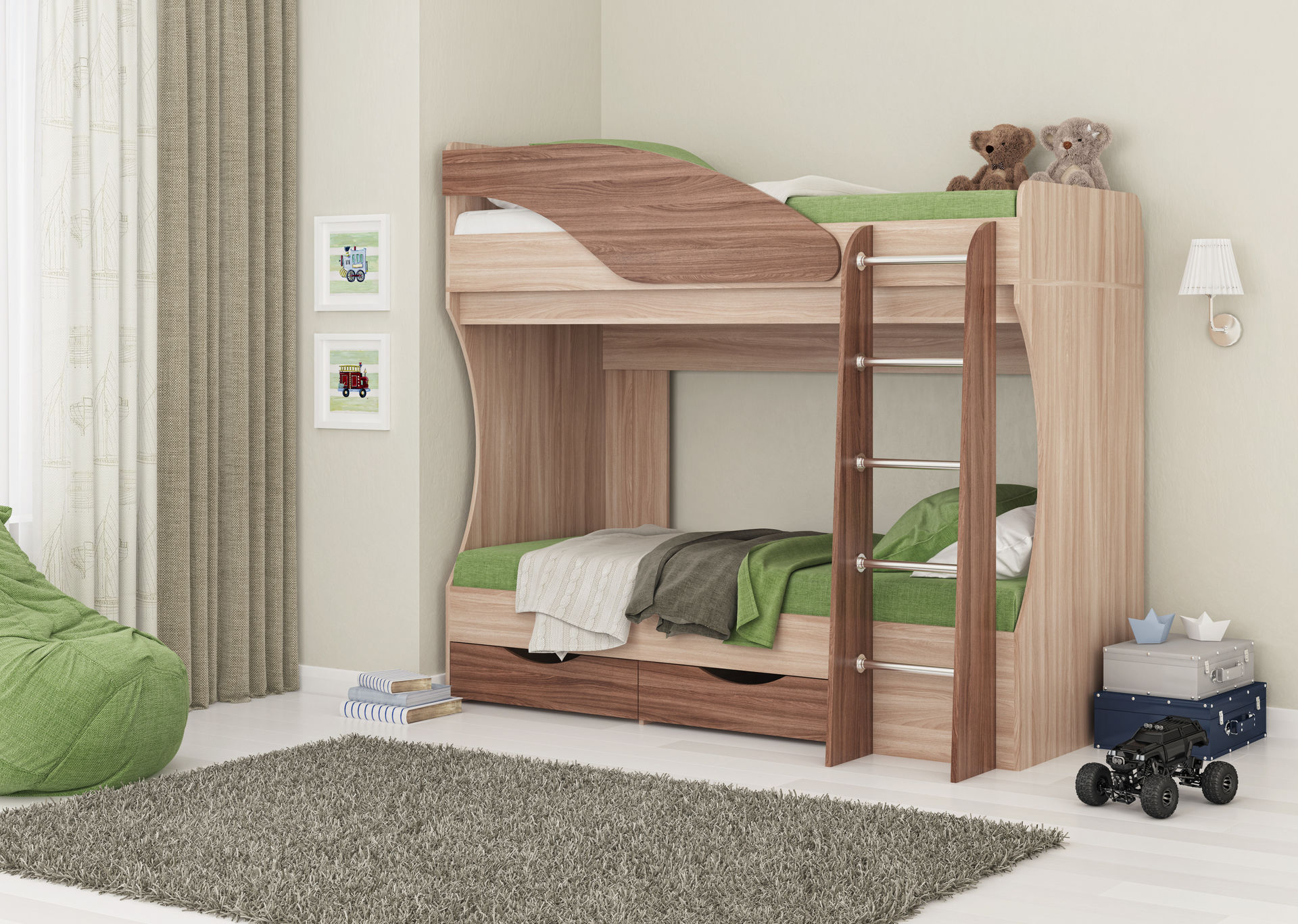 A bunk bed is an excellent solution for small apartments that have more than one child. Made from high quality chipboard, cots are extremely reliable and stable.