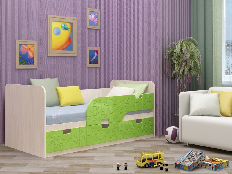 Model Lime is a type of classic beds of this company. A spacious berth, which is equipped with protective bumpers, will become a real fortress for the child and protect it from falling during sleep. Rich lime color makes the bed modern and bright, which is an important condition for any child.