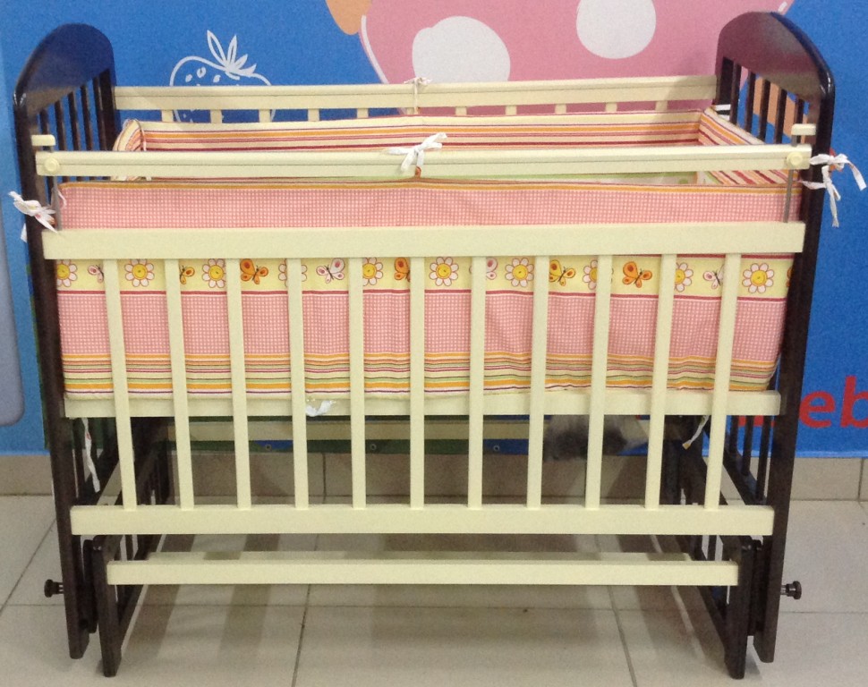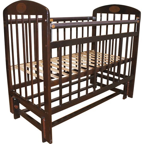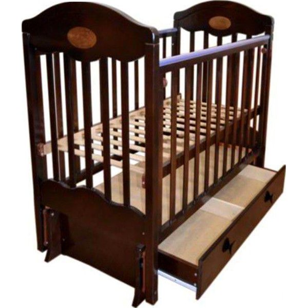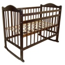 The bed is made on the principle of rocking, the set includes a set of wheels. The side of the bed is adjustable and removable. As the baby grows, the bottom of the crib can be changed, adapting to the child and the convenience of the mother. To adjust the bed there are three levels of assembly. Nice design is made in pleasant brown shades.