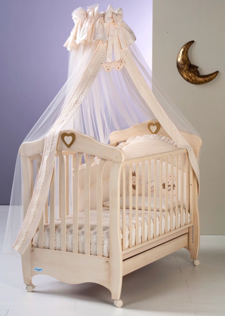 Many mothers try to decorate the nest of the baby as best they can. Toddlers grow very quickly, so you will not have time to look around, as he will be interested in various rattles and musical hanging roundabouts, which will amuse your child. In summertime, babies' beds are often covered with canopies, which perfectly protects their sleep from insects.Organizer for the bed, which is conveniently mounted on the wall of the bed, will keep everything you need at your fingertips. You easily get diapers, a bottle and other attributes of the child, because everything is always at hand.