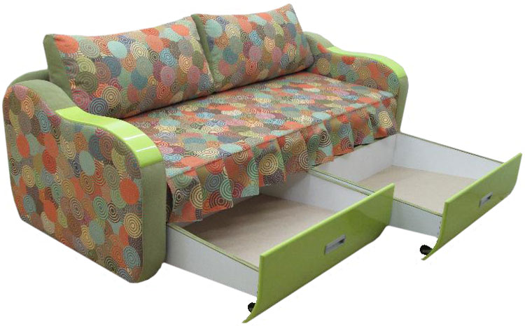 A small sofa Rhythm - rather non-standard model with drawers. Furniture serves as a good addition to any style of interior.