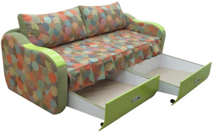 If guests came to the child, the sofa is a convenient option. It is quite easily transformed. Another plus of the folding mechanism is the availability of additional storage boxes. Such an option would be especially suitable for those apartments where the living space is limited, and there is not always a place to buy an additional cabinet.