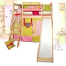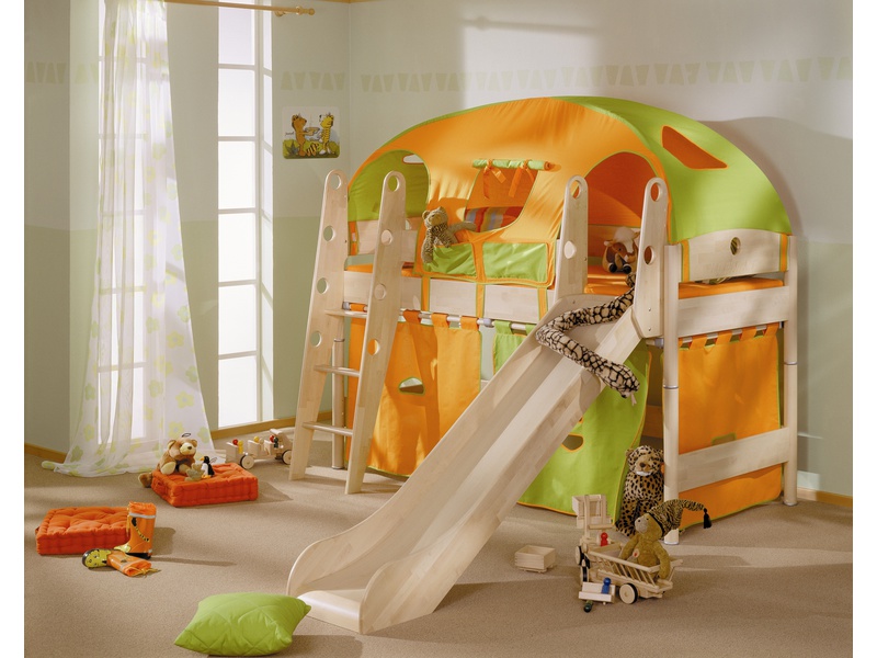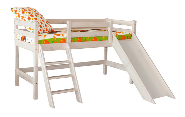 A bed with a slide has quite a lot of advantages, the first of which is of course the entertainment part in the face of the slide. Children with great enthusiasm roll down a slide and get great pleasure from it. But the most important advantage, from a practical point of view, is the strength of this structure, since it has a reinforced frame, and in the case of a two-tier model, there are also special mounts that ensure the best stability of this bed and ensure the safety of the child. Some models are even equipped with additional mounts to the wall. The safety of the child is also determined by special bumpers, which are located not only at the bed, but also at the very side of the hill. So, if the child sits to roll down, the possibility that he will fall is extremely small.