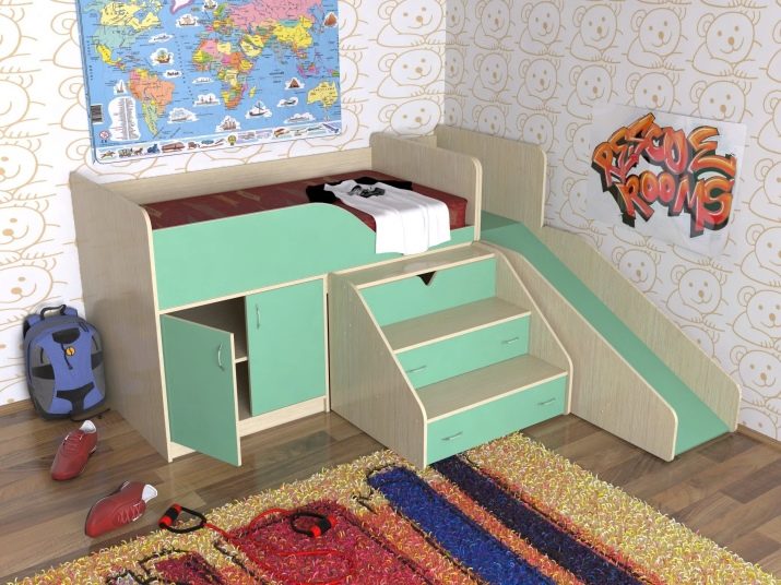 Like any other furniture, a bed with a slide has its own subspecies, each of which combines one detail, namely the slide itself.