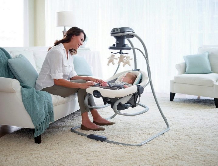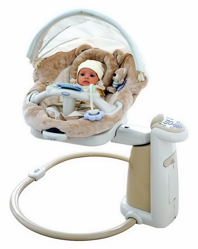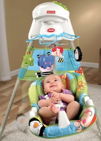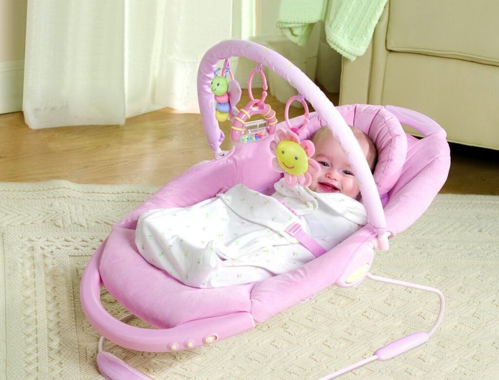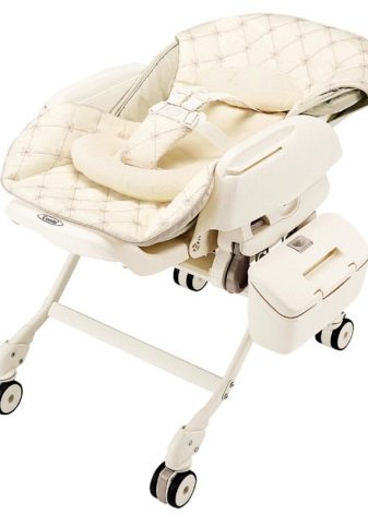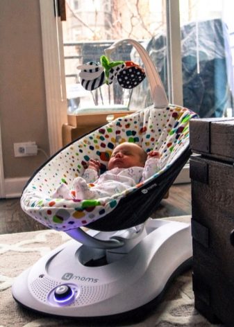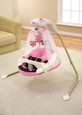 - Electronic chaise lounge. Popular models completely free the hands and give more time to parents. Adjustable vibration swayed. Complemented by melodies and lighting effects.