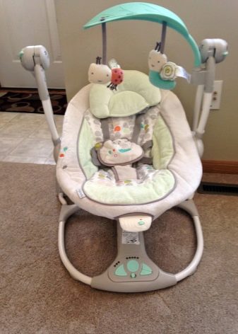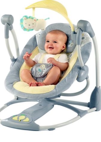 Manufacturers of lounge chairs do not forget about additional accessories that delight children: hanging mobiles, toys, melodies, tweeters, rattles, educational accessories. Functional features such as vibration, swing and sway speeds, transformations,only improve the design and bring joy and harmonious communication of children and parents during games, feeding and rest.