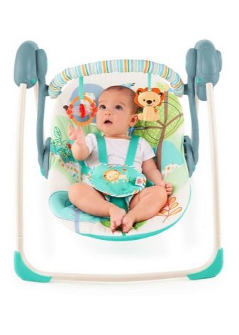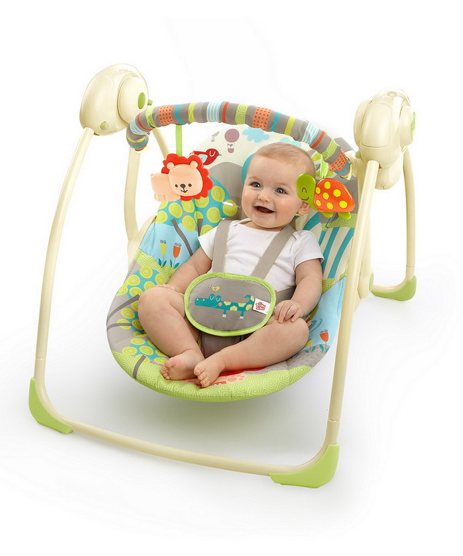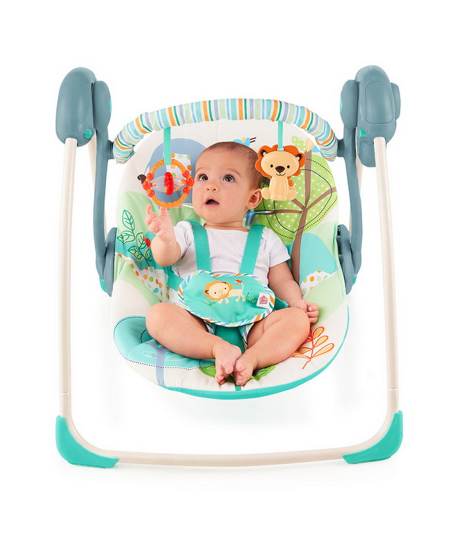 - Bright Starts Playful Pals Portable Swing - TrueSpeed proprietary technological development, where the feature is to keep the speed of motion sickness unchanged at any weight of the baby. Swing speeds of 6, which are continuously adjustable. Ergonomic seat for a child’s body and a few toys. Installation is easy and irreplaceable when moving with children.