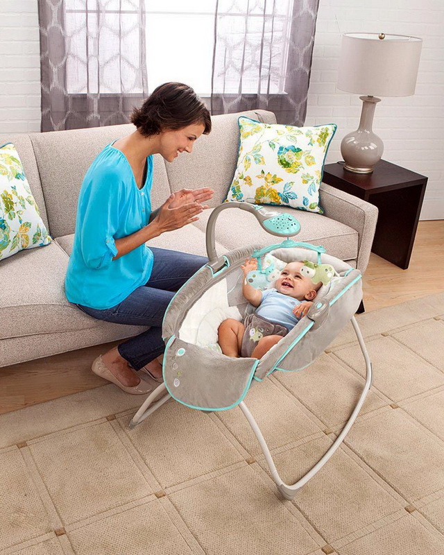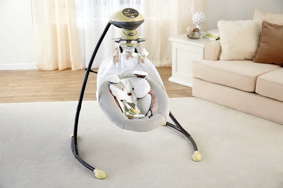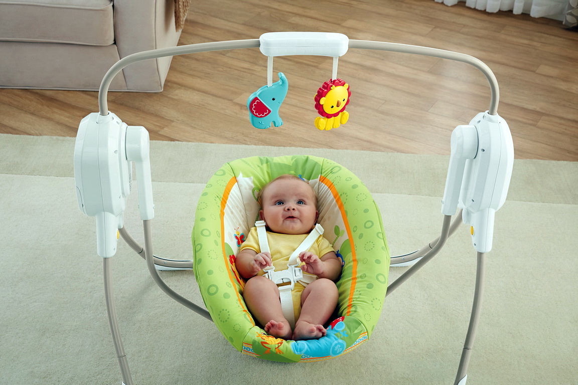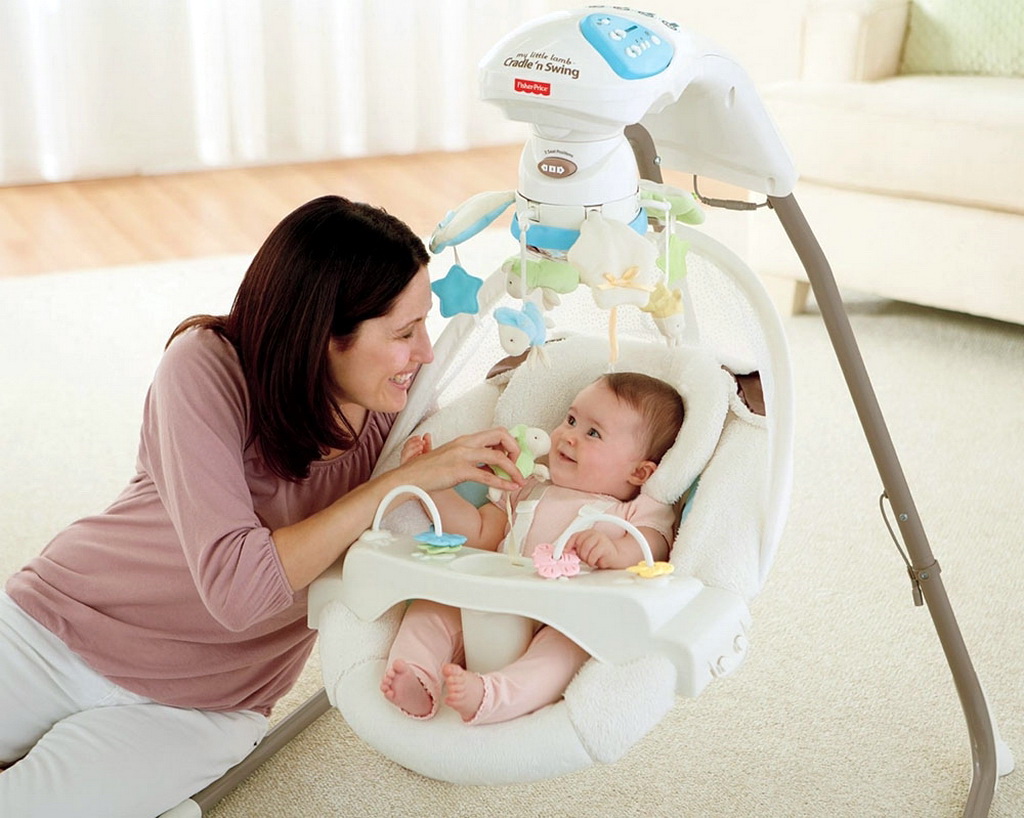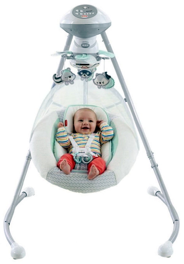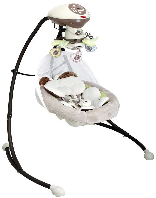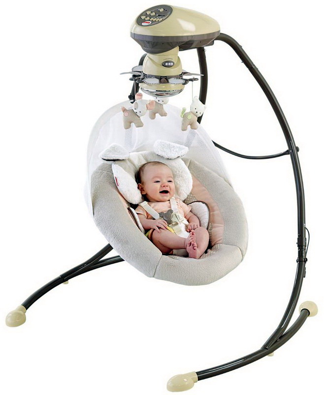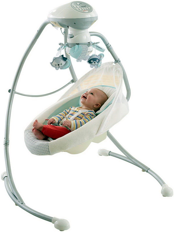 - Fisher-Price — The Moonlight Meadow model (Moon Meadow) is quite popular with both parents and children. The cheerful and colorful design is fascinating. Swing modes, of which 2 and several speeds, many melodies and sounds of nature to choose from, harmoniously complement technical developments.Comes with straps for proper holding.