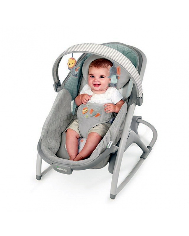 - Ingenuity Convertme Swing-2-Seat model rocker with functions requested by parents. Adjustable turns, speed and the presence of a lot of melodies for the cambre like consumers and adults, and small. Rechargeable batteries are designed for quite a long time. The motion sickness timer, light spring shock absorption have excellent reviews. Comes with sturdy straps for fixing.