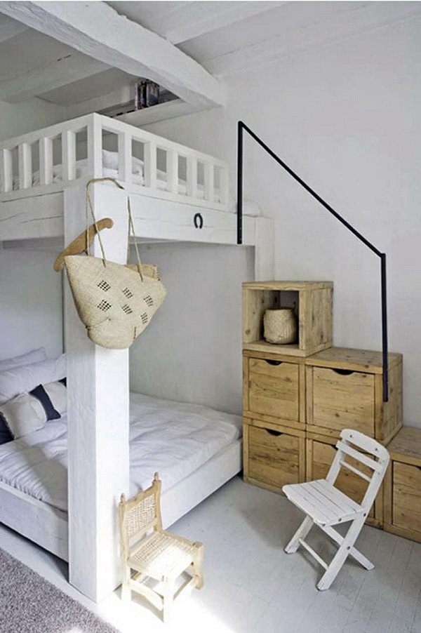 And the last thing a bunk bed can do is merge with the interior style of this room.For example, the bed may be white in accordance with the color of the room, which will create an atmosphere of calm and cleanliness.