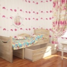 - Functionality - Most models of beds growing with a child are equipped with additional drawers and sections, in which it is convenient to store not only bed linen, but also clothes, toys and other necessary things for your baby.