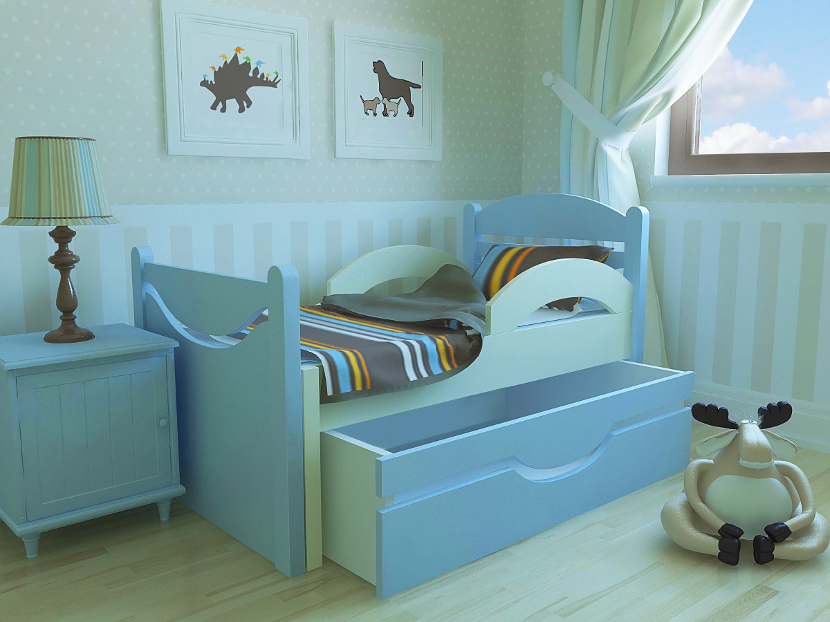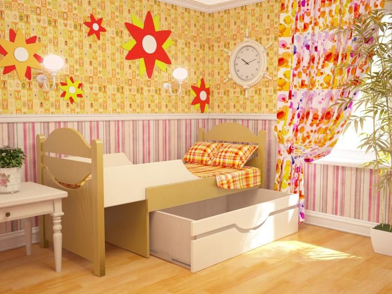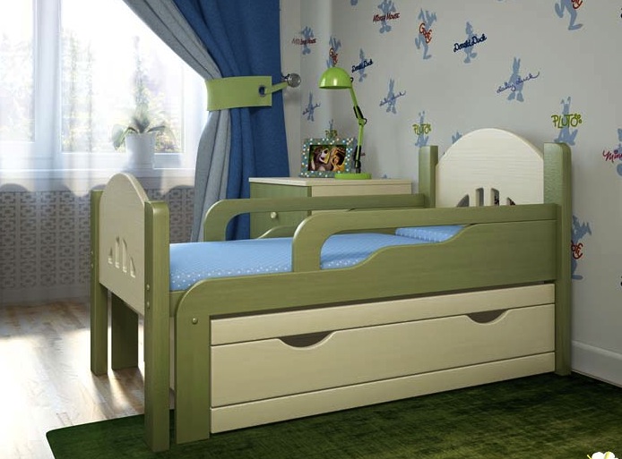 - Space saving - beds with sliding mechanism take up quite a bit of space. Moving apart only while the child is sleeping, they save space in the nursery, which is especially important for small apartments.
