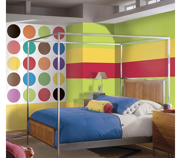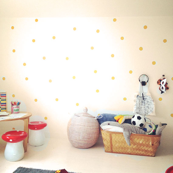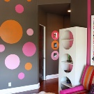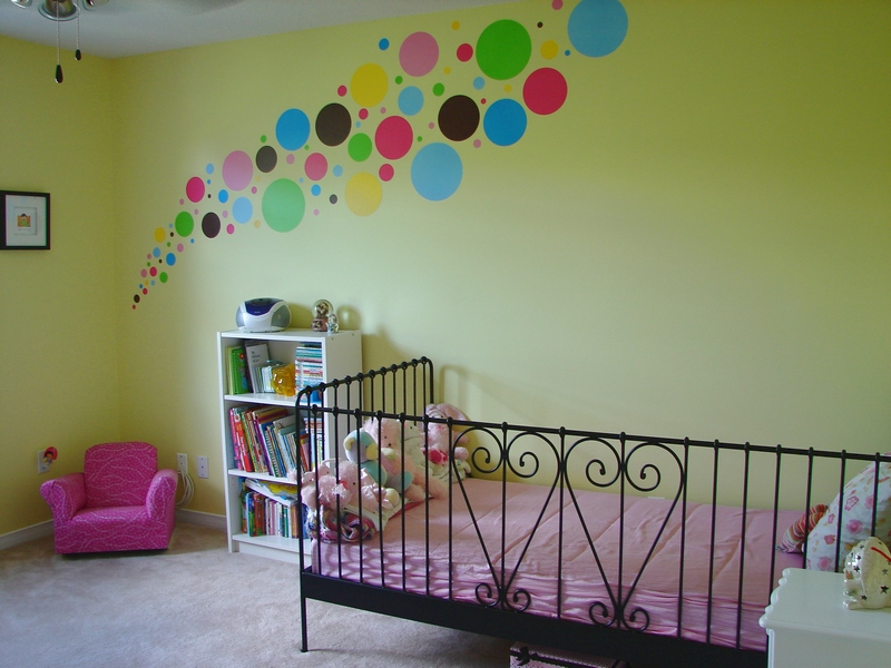 In this case, you can choose the diameter and color of the peas yourself, arrange it as you like. First you need to paint the wall with one specific color, then make a round stencil and, leaning it against the surface, paint it with any color suitable for the interior paint.