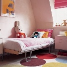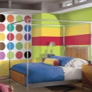 - The unusual decor of the child’s bedroom will be distinguished by variegation; in addition, it can be decorated with interesting solutions, for example, with bright pillows, interesting rugs, matched to the tone of the wall covering. Floor lamps or simple sconces will not be superfluous.