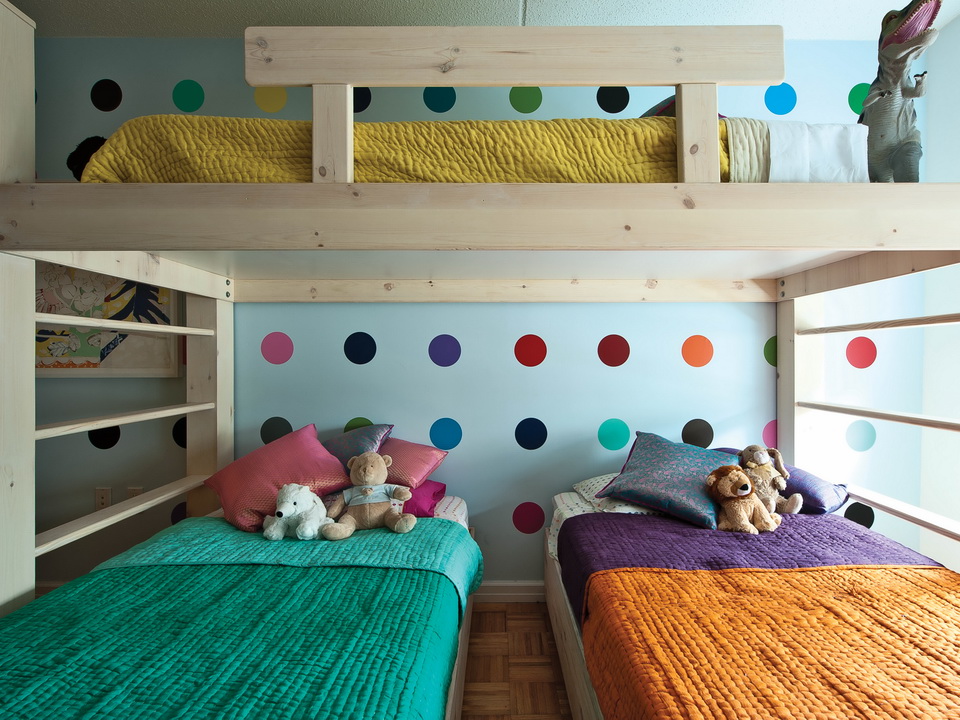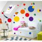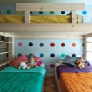 - Multicolored peas raise the mood, in a room where such a print on the walls will never be boring and dull. These wallpapers are charged with energy, give pleasant emotions.Circles on the walls can be of different diameters, so that apartment owners can design their own property in an original way. You can glue over such a wall or one part of it, make it onto the ceiling or transfer it to the other side - such decoration of the children's room will surely please the kids.
