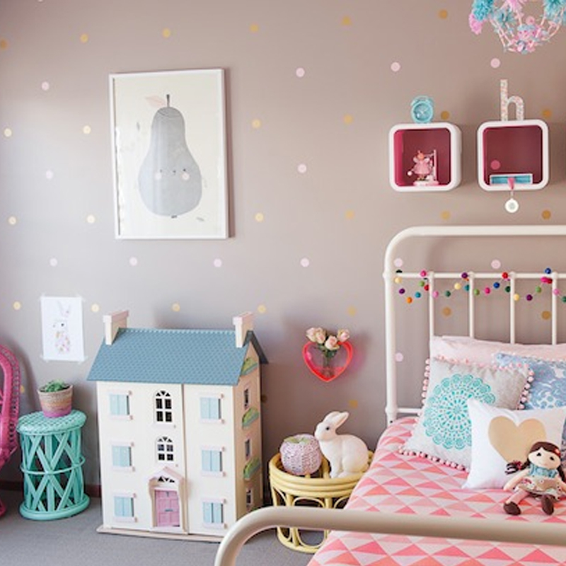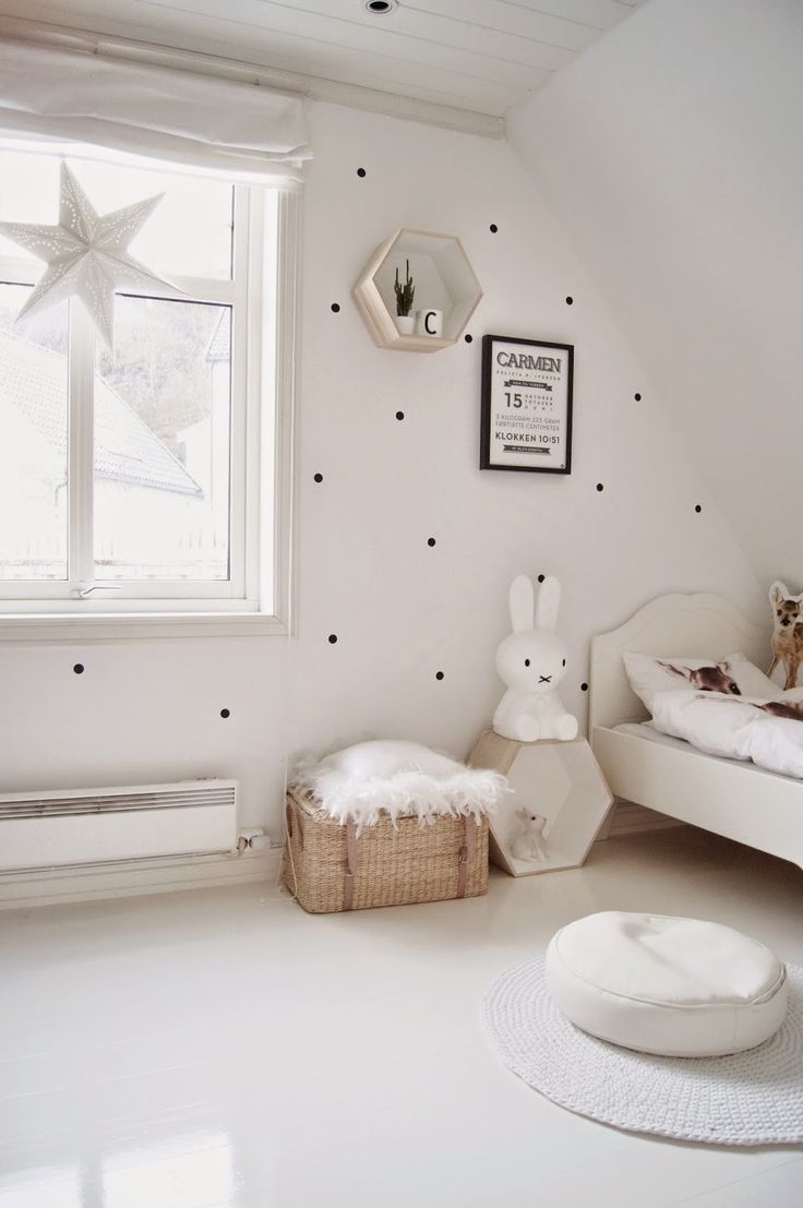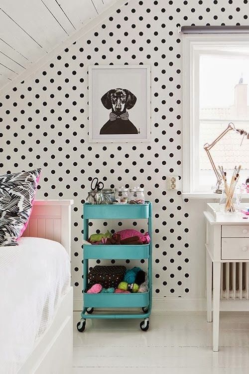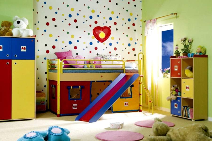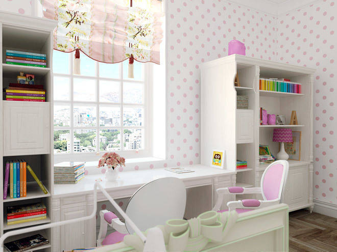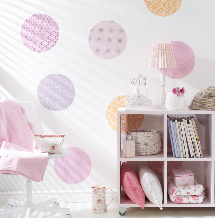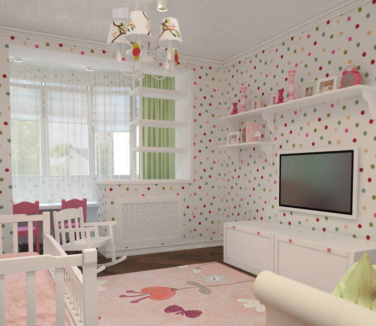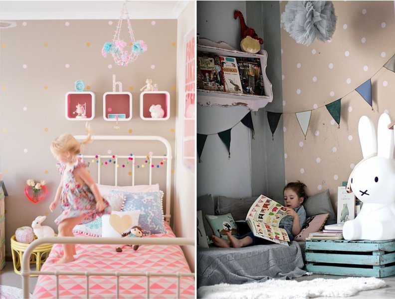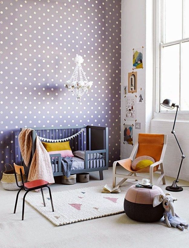 Wallpaper polka dots for the nursery - perfect. In this place, the child spends most of his time, accepts friends, plays, has fun, and it is the pea print that helps to lift the mood, is the key to a successful start to the day.