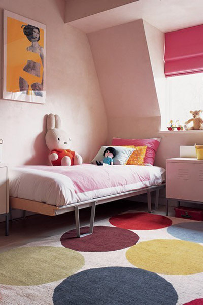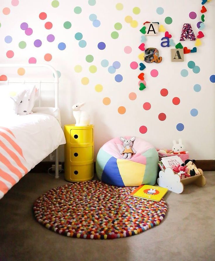 An important factor is the diameter of the pea and the background color on which it will flaunt. Bright shades of medium and small peas are good for playing areas, quiet tones of large - for a recreation area.But it’s not advisable to contribute to a working one. The child will be constantly distracted from the educational process, staring involuntarily at the pea ripples.