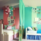 But if the room is small, then zoning in this case is unlikely to work. Here it is better to use a compromise option. For this fit wallpaper beige, orange, mint shades. In no case do not use colors that cause aggression and negative. Children should not be in the same small space.
