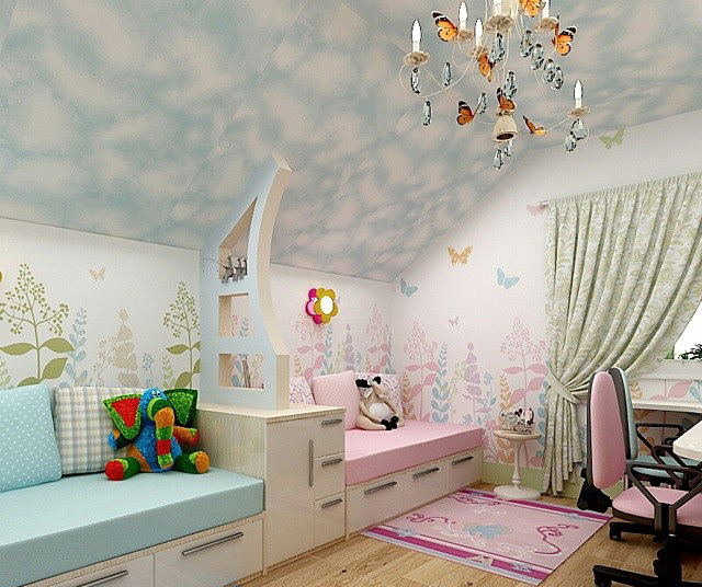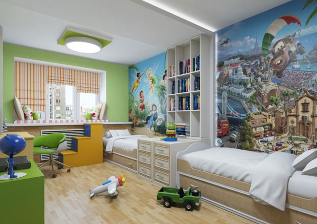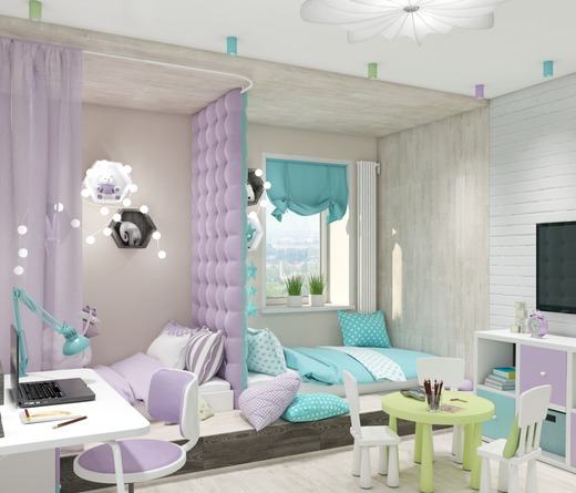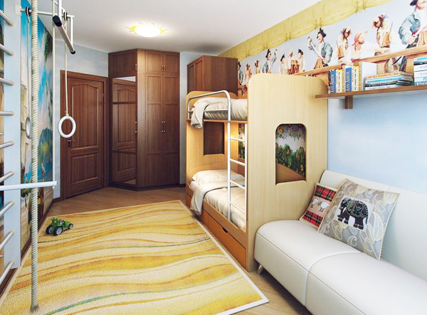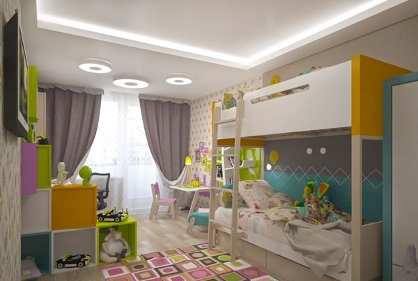 When repairing children's rooms, in which several children are planned to live, in no case should one give preference to one of them. Even if this child is older. The priority should be the interests of both children. It is also necessary to allocate a place for games and communication between children.