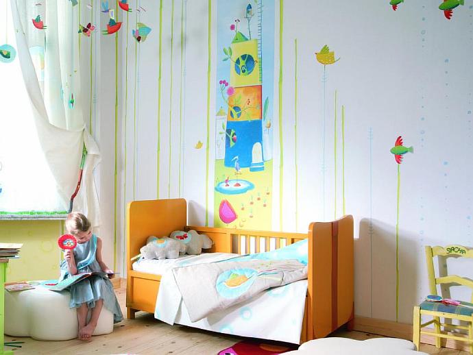 Currently, manufacturers produce wallpaper not only on a paper basis, but also on non-woven. Flizelin is a dense nonwoven fabric. It is made from cellulose, to which are added natural or artificial fibers of fabrics. This material is easily breathable, which undoubtedly is a big plus for the children's room. In addition, non-woven wallpaper are not afraid of moisture, so they can be easily wiped with a damp cloth if necessary. Also, this wallpaper is more wear-resistant to damage than paper.