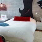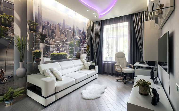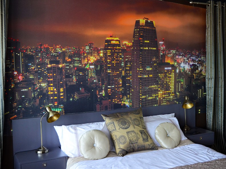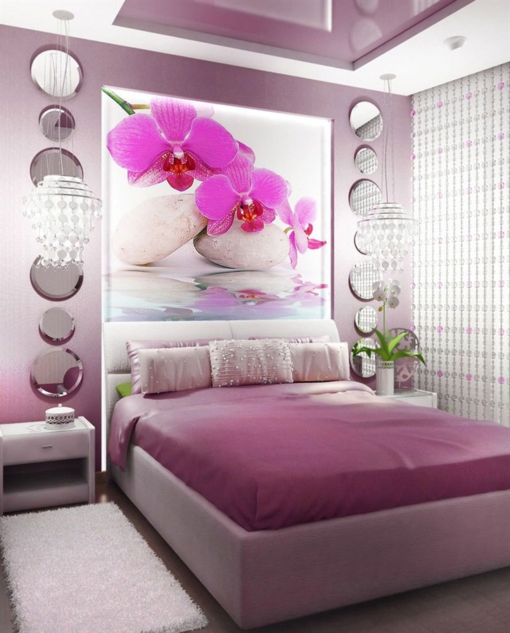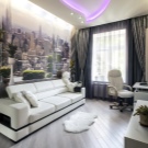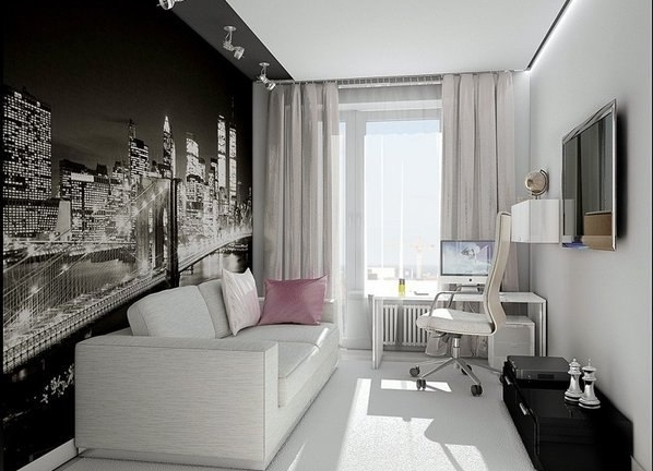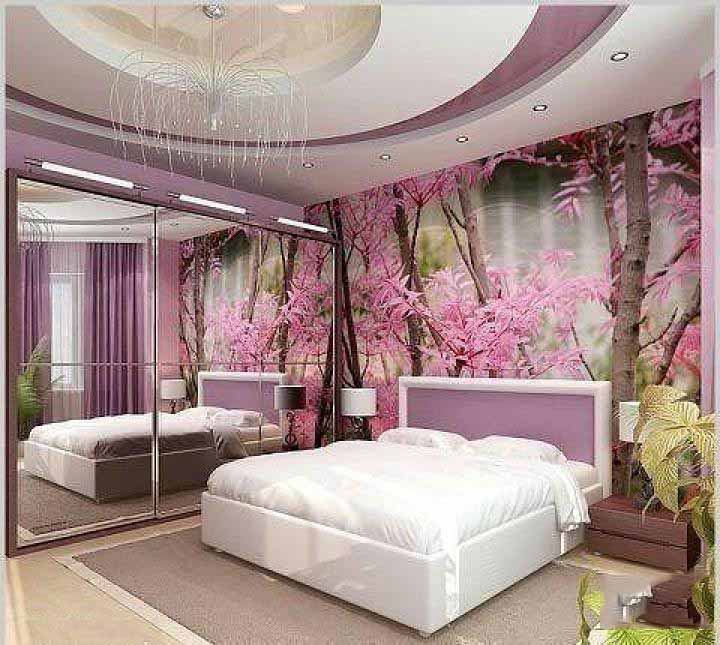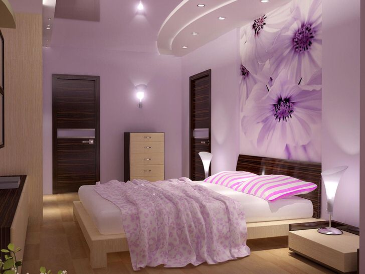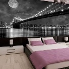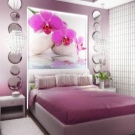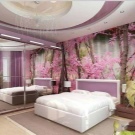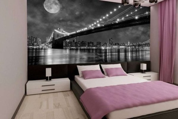 With the help of photo wallpapers it is easy to change the space of a room beyond recognition. Choosing a wallpaper with a glossy surface can optically increase the space, due to the reflection room acquires additional volume. Poster having horizontal or vertical stripes in the drawing (for example, the image of bamboo), also significantly increase the space. In order to lengthen the bedroom, use widescreen drawings. It is important that the integrity of the panel does not violate the furniture in the room, the sofa or the chair, against the background of the photo wallpaper, will divide the design and distort perception.