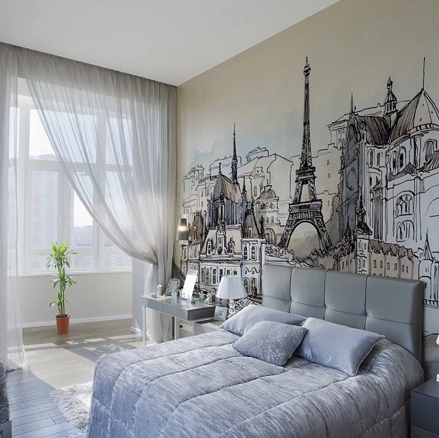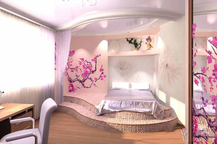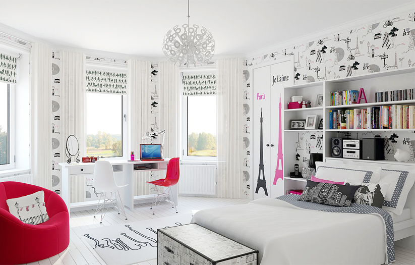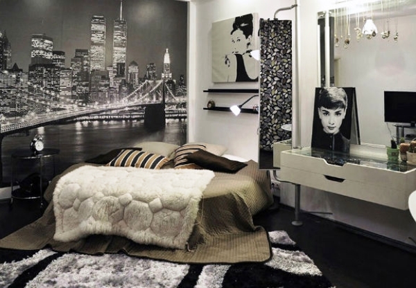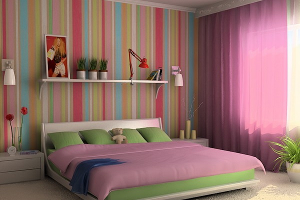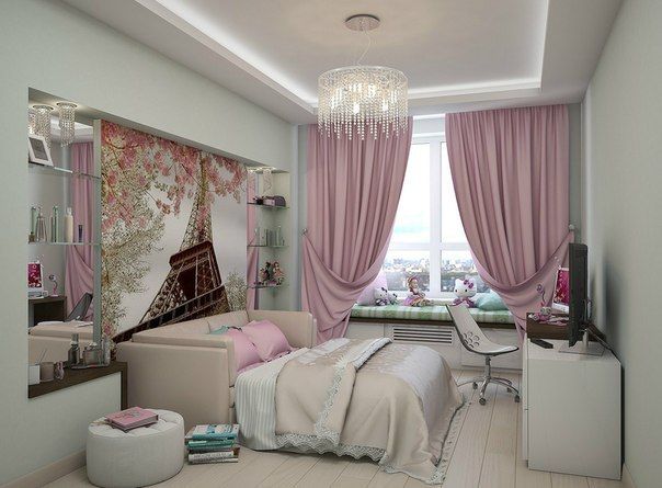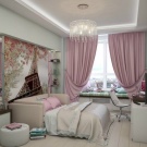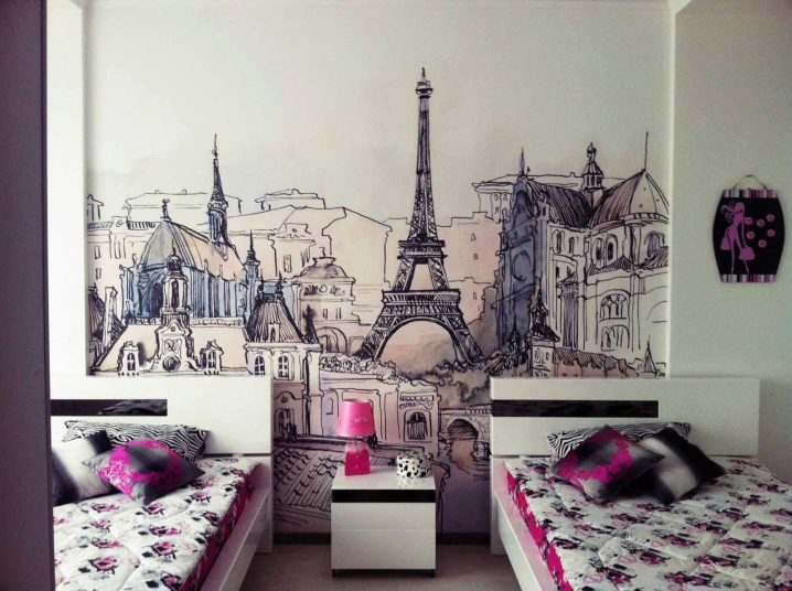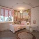 Look interesting in the interior urban wallpaper-landscapes. Any girl will be pleased to travel back to the streets of Paris, and cityscapes supplemented by illuminated will create the effect of presence. For creative girls, photo wallpapers with a 3D perspective are suitable, giving the room scale and additional volume.