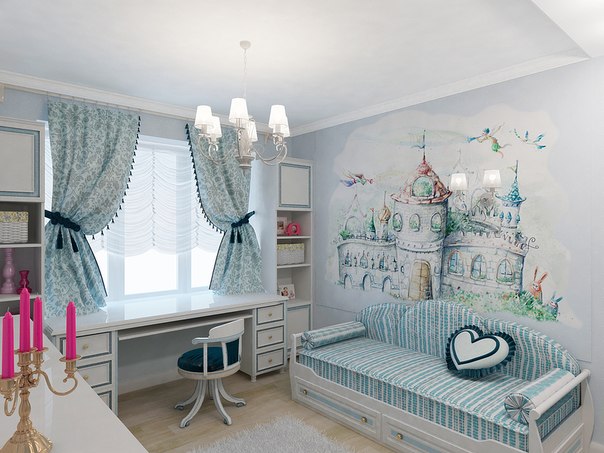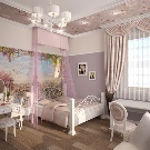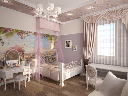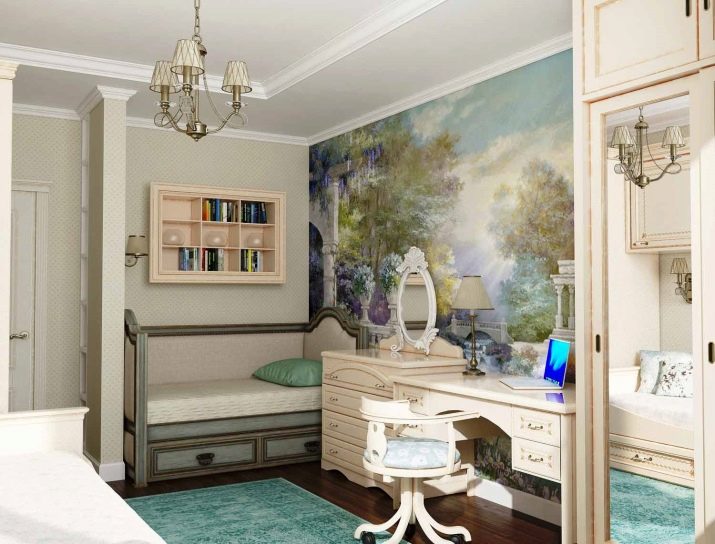 When choosing photo wallpaper in the nursery one should not neglect tips on choosing a color solution for a teenager's bedroom. The ideal option for the girl will serve pastel shades of the romantic Provence style, delicate powdery colors and green landscapes. The bedroom, decorated in such calm colors, will be a great place to relax a young girl.