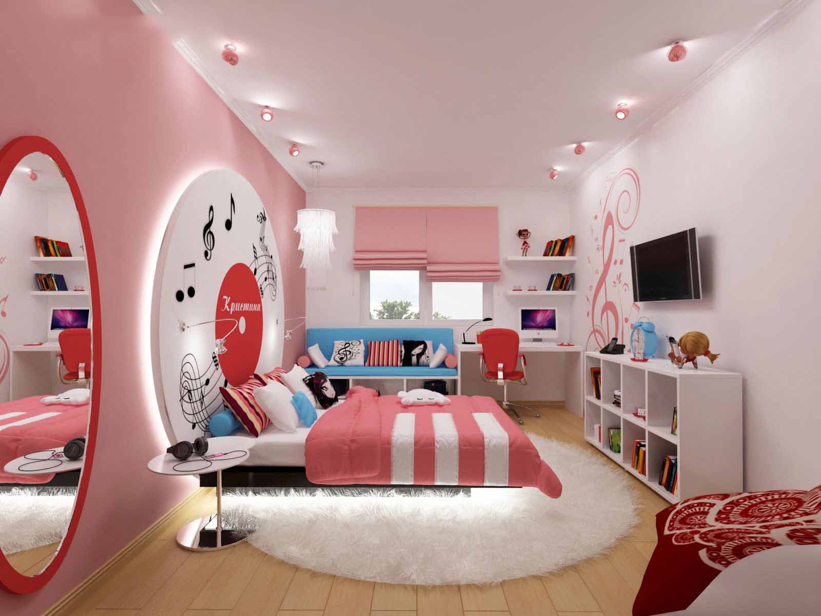 Knowing the interests of a teenage girl, you can jointly choose the wallpaper in the room, taking into account the interests of the child. In the salons of the interior and just building stores all kinds of photowall-paper collections are presented for every taste. Not finding the desired option, you can contact a specialized company that is easy to make wallpaper with your picture or photo. The price of these photo wallpapers will be different from the store, but in return you will receive an exclusive product.