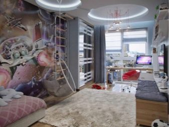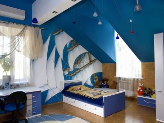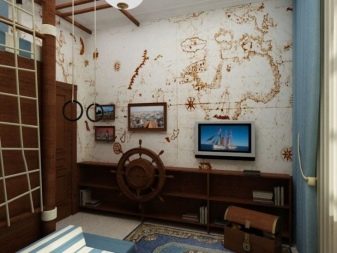 Naturally, the ideal design of rooms is the harmony of all children's elements: for example, the theme of the sea is no longer funny cartoon fish, these are beautiful ships, seascapes; animals are not cute cats, but powerful lions and tigers.