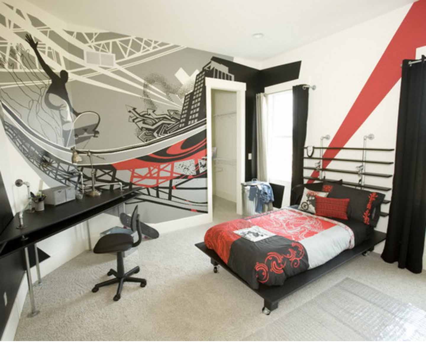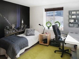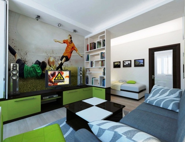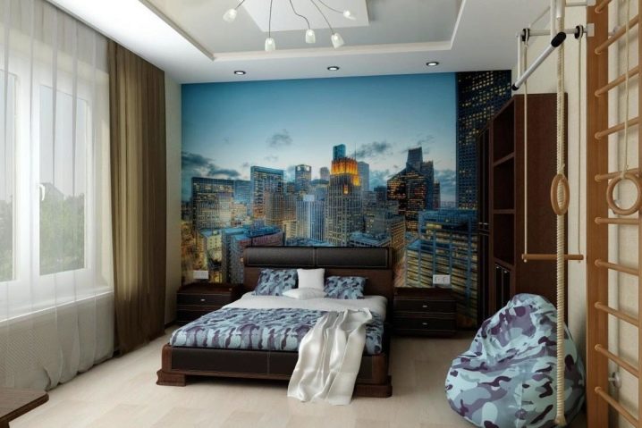 The most common way to design a room for a teenager photo wallpaper is the use of pictures in a modern style that fully correspond to his interests.Depending on the nature of the young man, his taste preferences can vary daily, so parents should always consult with their sons about the drawing.