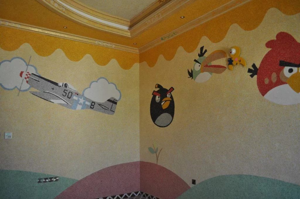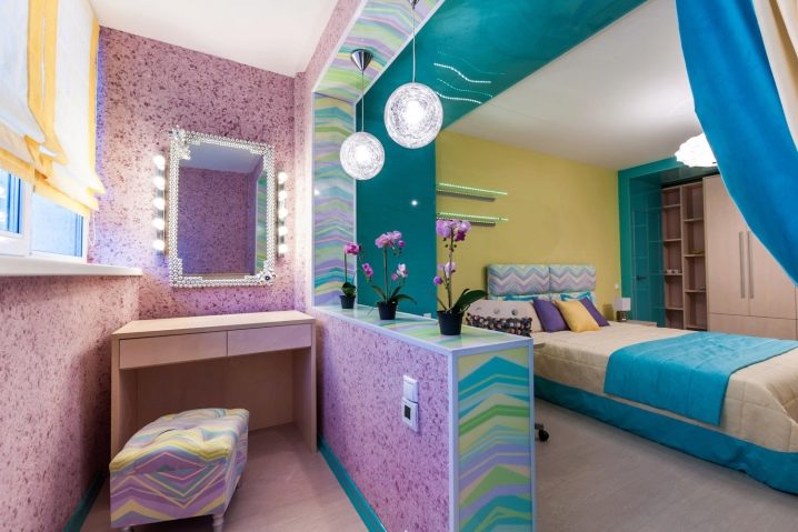 For a teenager, you can make a picture from liquid wallpaper that matches his hobbies and tastes. If a boy is interested in technology, then it is worth decorating the wall with images of cars, robots and computers. If he is an athlete, then it is best to depict in the room a model of a football field or symbolism of popular sports clubs. For girls at this age, images of their favorite idols or romantic motifs will suit well.
