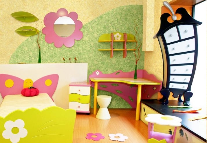 Wallpapers with decorative fillers will make a bright touch to the interior of the children's room. Additional components for them are made of mineral stones, mica, wood chips and even dry algae. Decor with sparkles will add brightness to the room, but you should not use it with an excess of lighting.