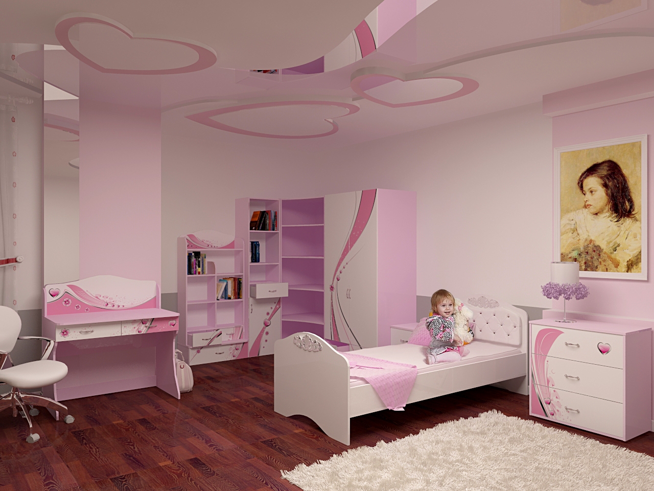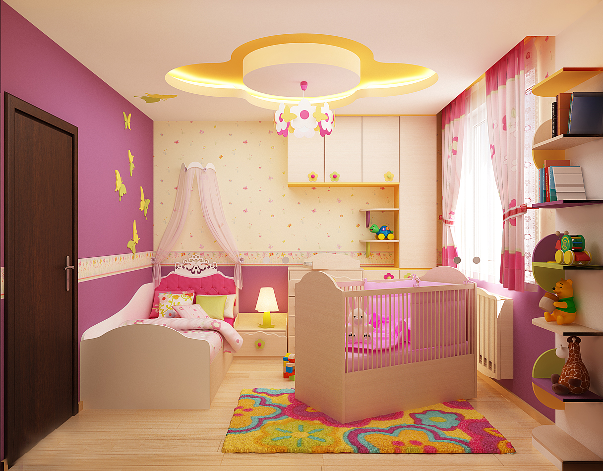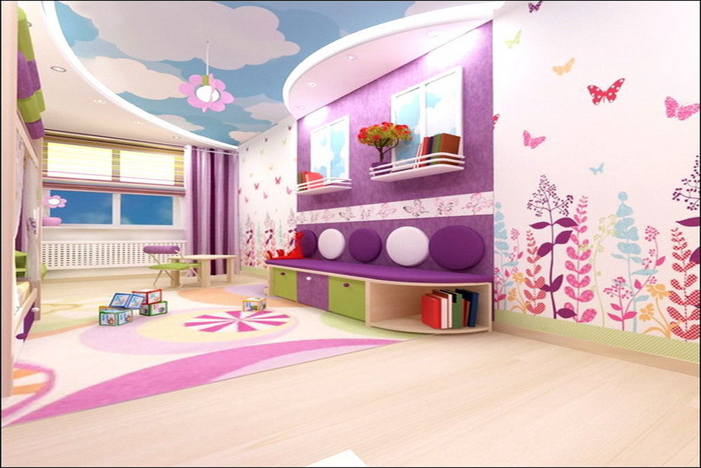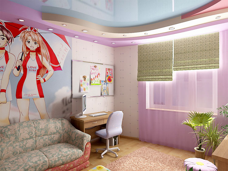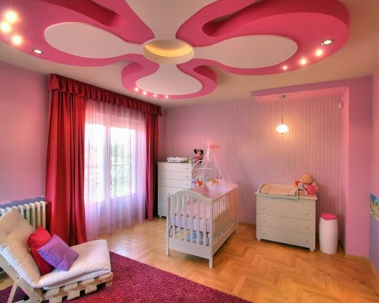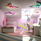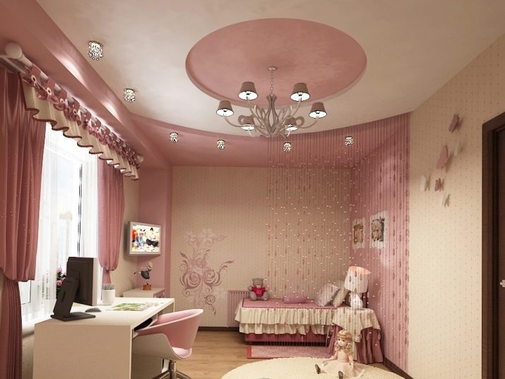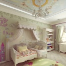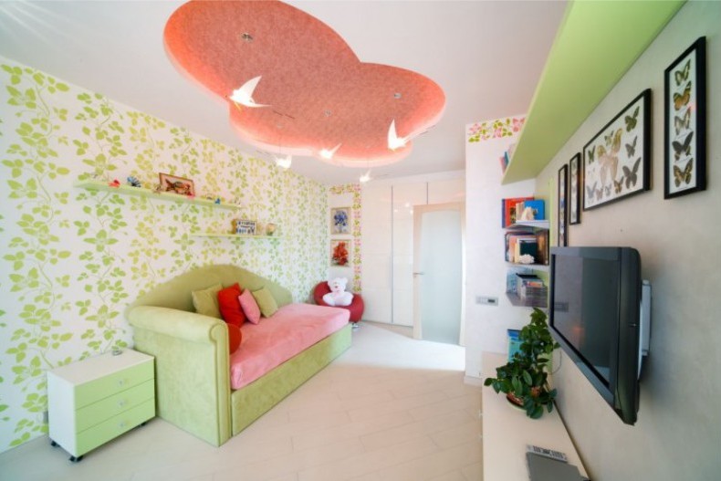 If you think about the interior and decoration of the room for a little girl, then our main advice - do not overdo it. The child's psyche is finally formed only by six years. Sharp colors and too fanciful forms can irritate a child, and this is not the effect you want to achieve. Sometimes, if the ceiling seems too boring to you, it is better to buy additional lighting solutions, for example, "starry sky" or lamps that change color.If such a device gets tired, you can always remove it on the shelf, unlike the ceiling, which is so easy to change.
