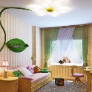 As for some thematic patterns, the most favorite ceiling motifs for young children are the light, slightly cloudy sky, the water world, cartoon characters or simply fairy tale characters, natural themes or a child's hobby, for example, sports motifs or animals. For a teenager more themes of space, perhaps art, simple and inconspicuous geometric forms.