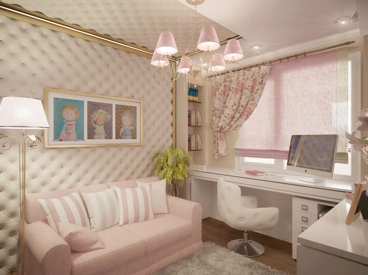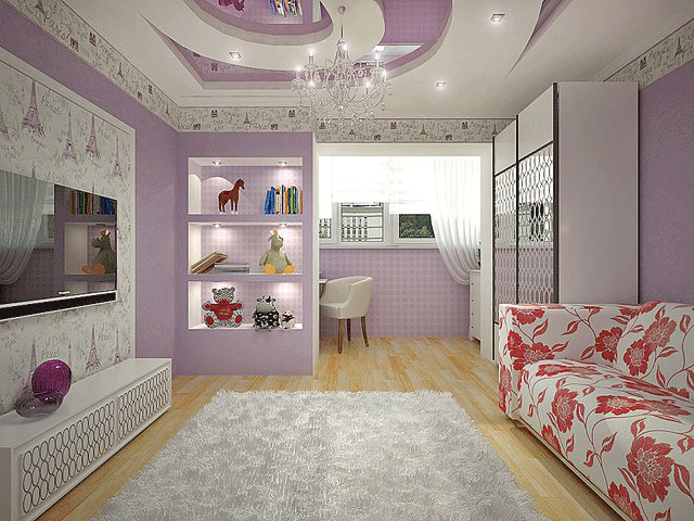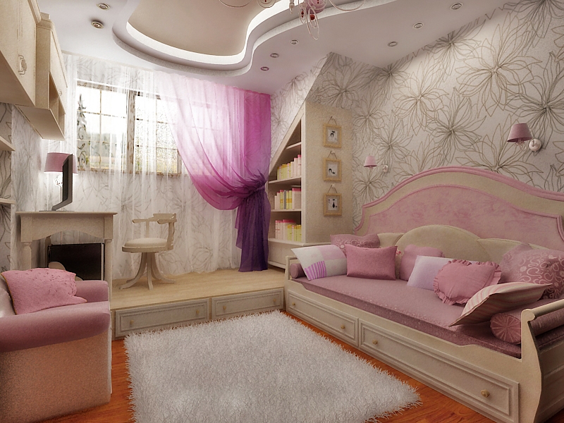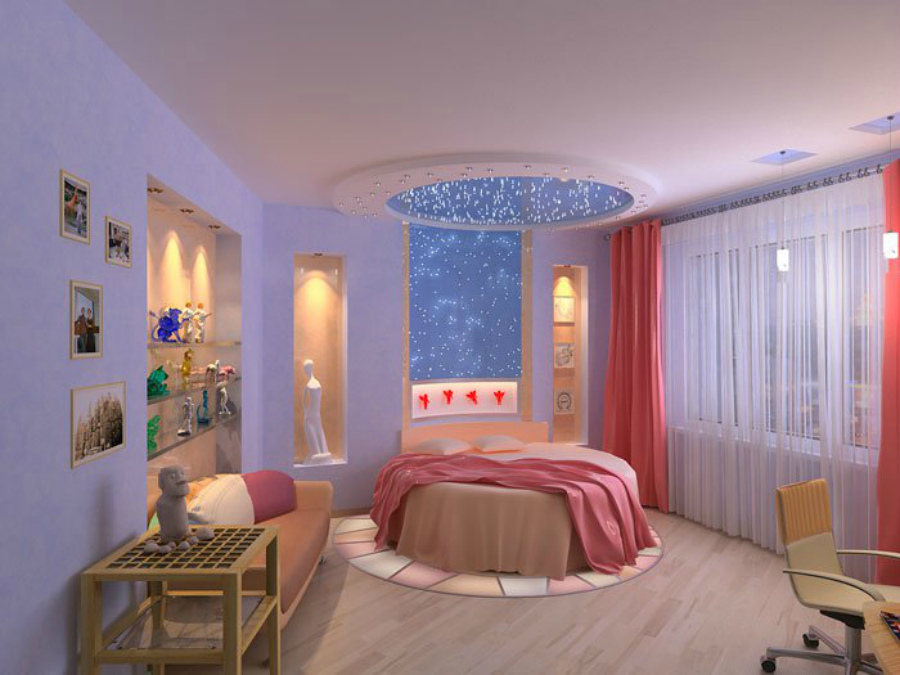 Mentioning in the paragraph above that a beautiful ceiling can conceal space, we will give some advice to those who would like to visually enlarge it, because for a girl it is important that the room is light, open, so that she can breathe easily and want to create!