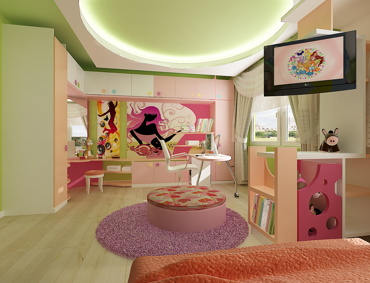 The optimal color solution for a girl's room is a combination of severalwarm and soothing shades, with small inserts of sunspots in those areas where your daughter plays or learns.