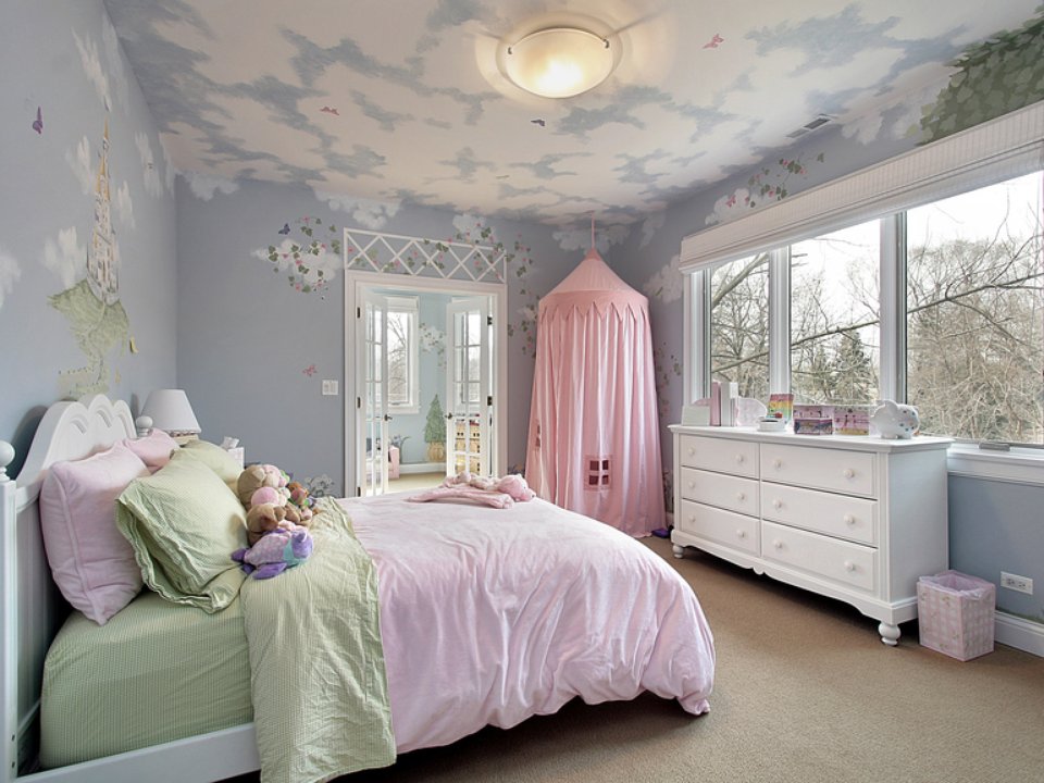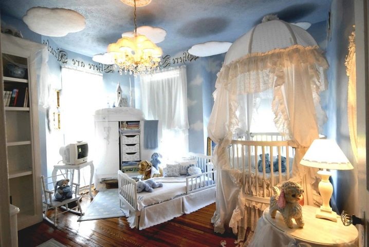 The ceiling is the part of the room that you want to do once and for several years. When a little princess appears in your house, you want her “kingdom” to be as magical as possible, but at the same time eco-friendly and not branded. What materials, colors, ideas for design to choose - we will tell today.