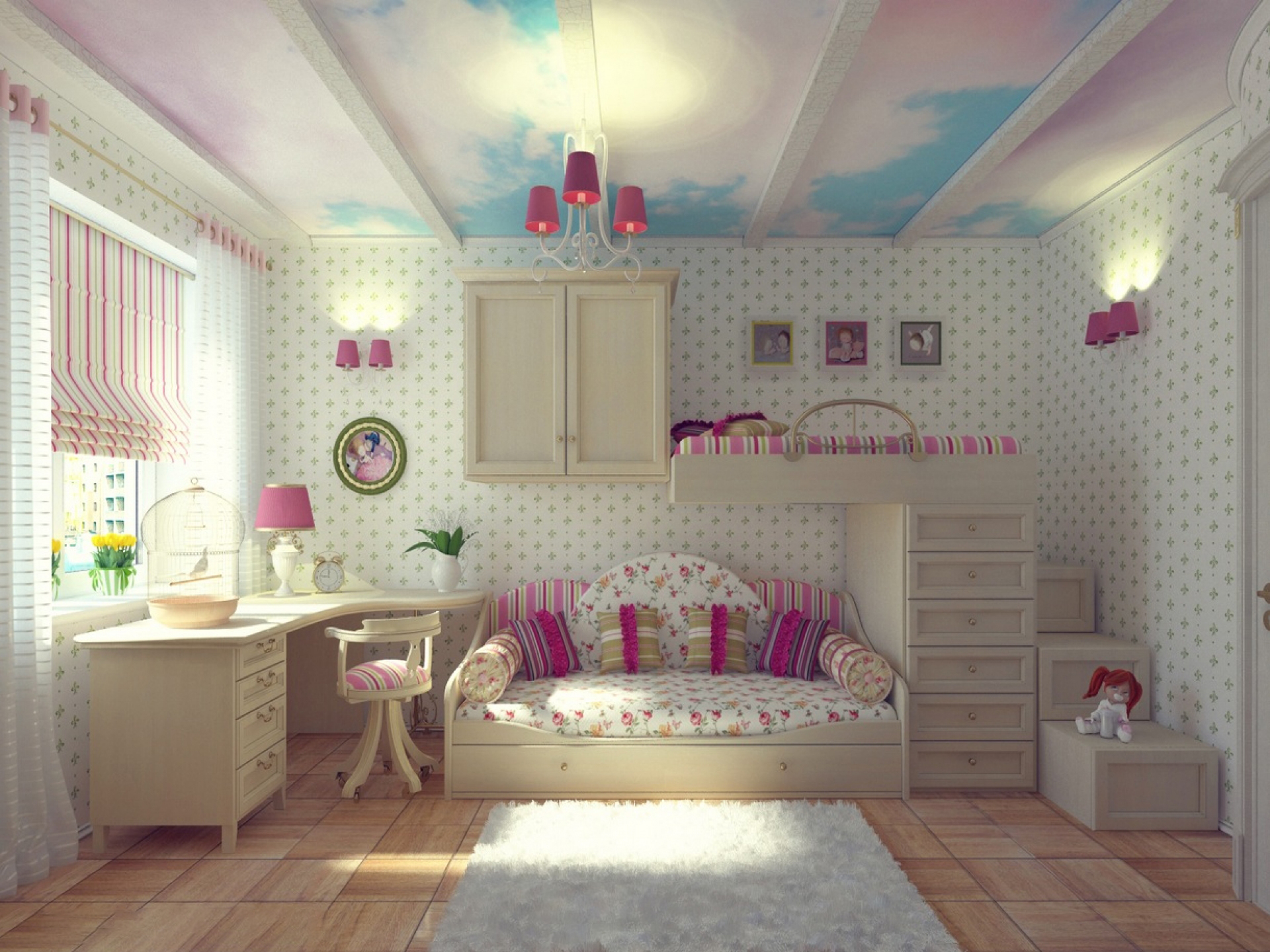 The ceiling in the nursery for girls