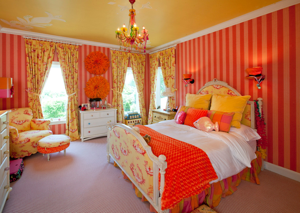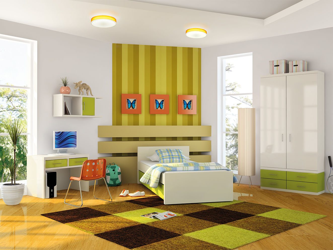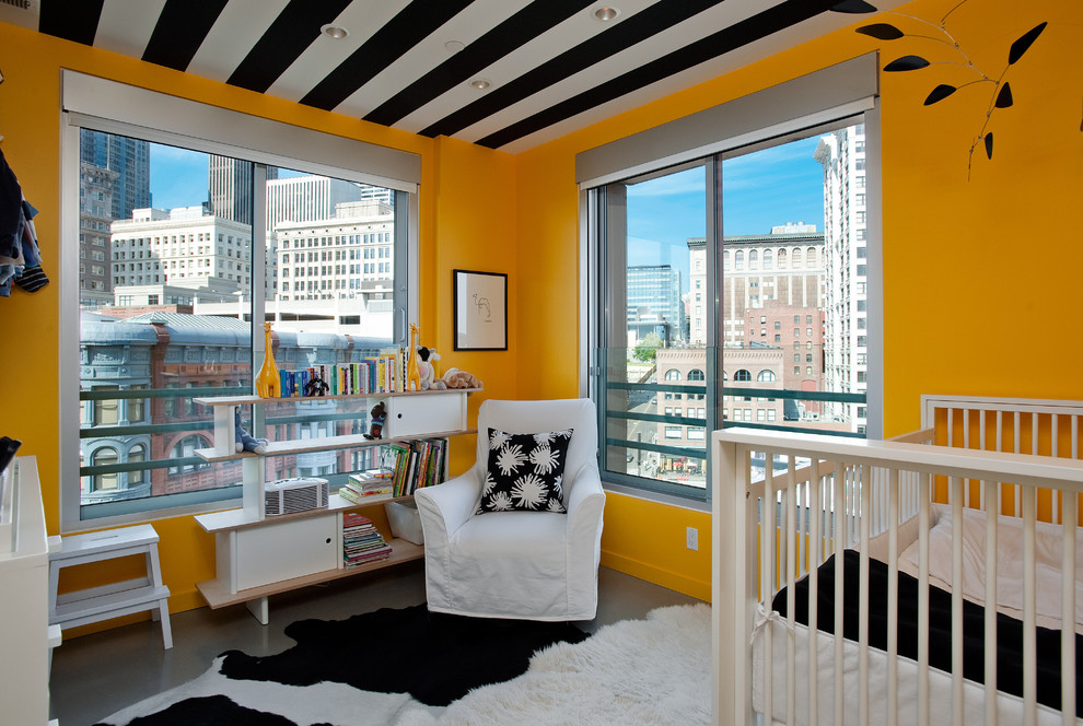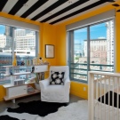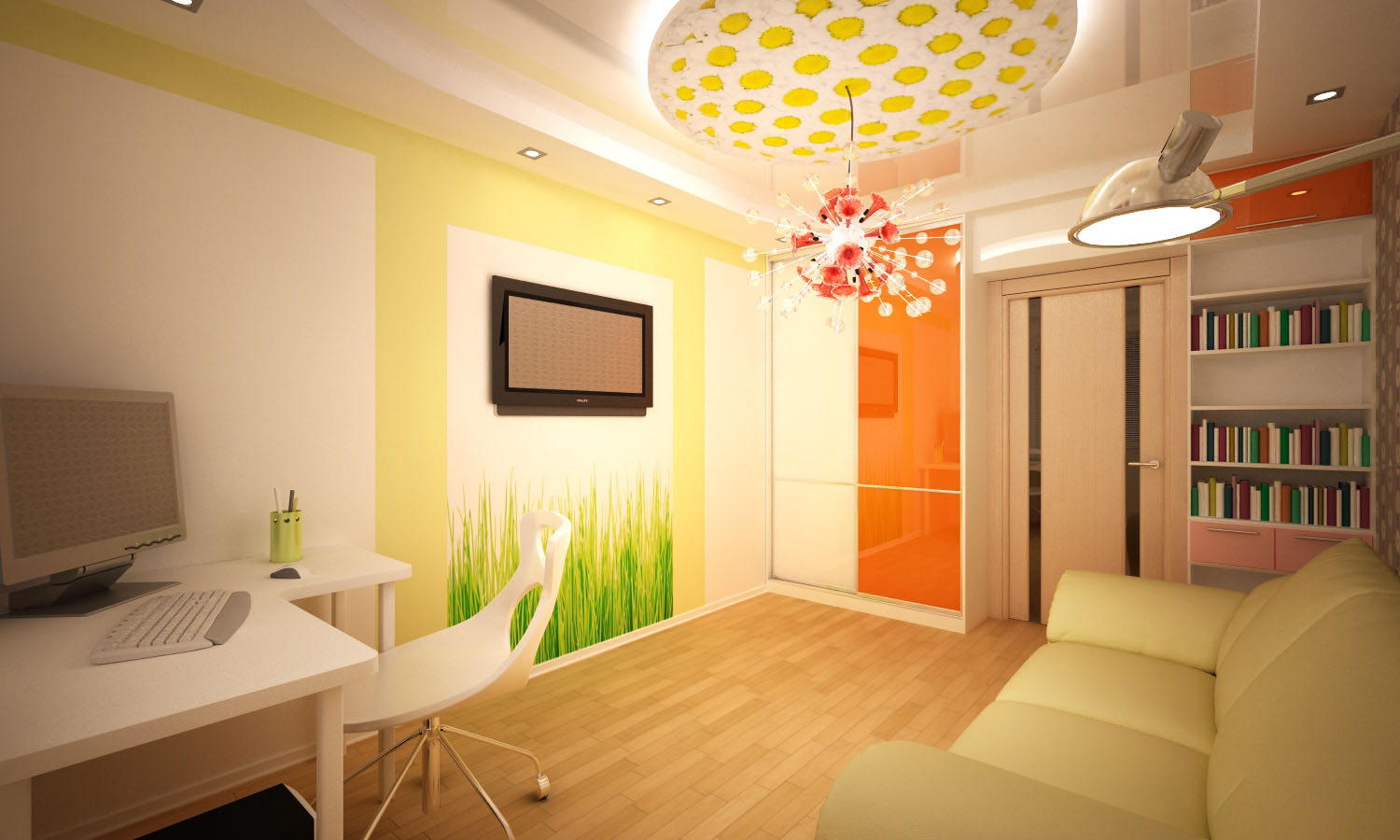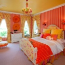 The yellow color causes mental activity in the child, so it is better to place the ceiling of this color above the working area, where the child will learn the lessons. This will help him concentrate.