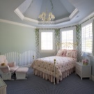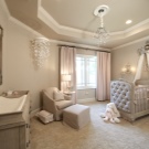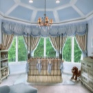 Better to make a ceiling in pastel colors. Beige, light pink, blue, silver shades soothe your baby before bedtime and improve mood when waking up.
