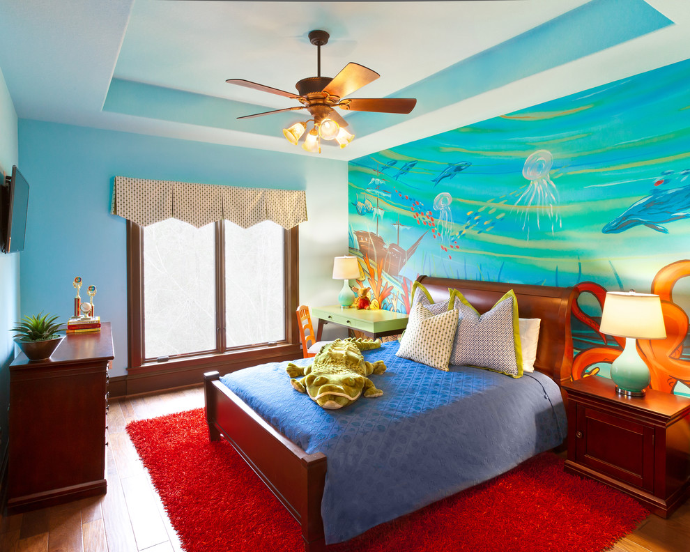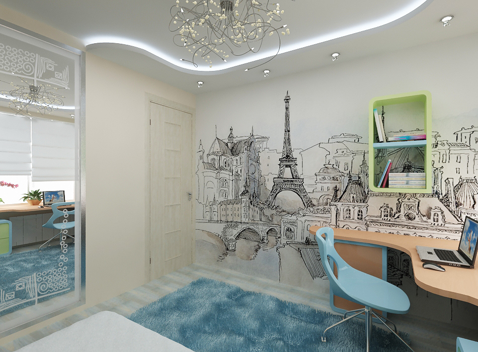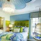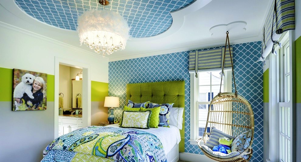 Even the room of a teenager with a blue ceiling, it is quite possible to be, if this color is backed up with accessories.