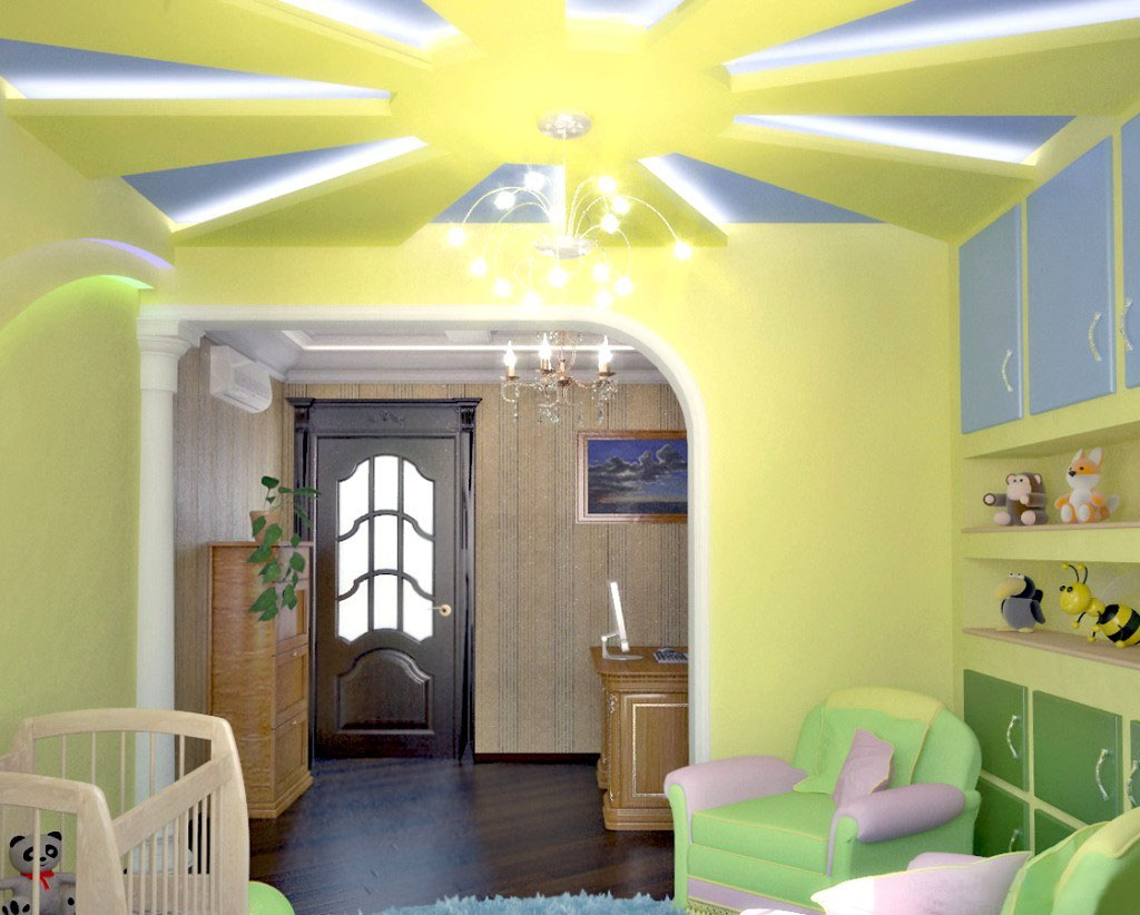 Also, plasterboard ceilings can be combined with stretch. This will make it possible to use different textures at different levels, which will transform your children's room and give it a unique look.