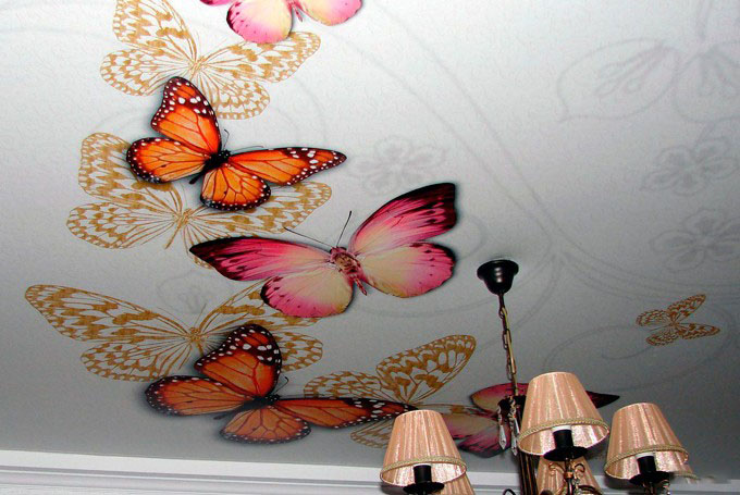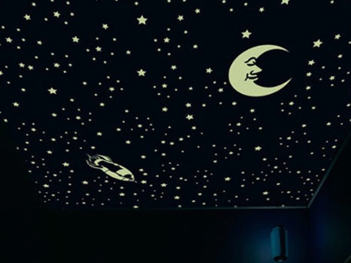 You can also decorate the ceiling with original stickers.They can be in the form of animals, flowers, insects. Vinyl stars with fluorescent paint are very popular with children of all ages.