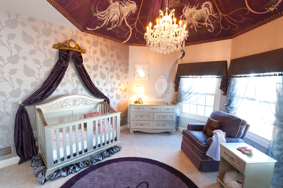 You can decorate the ceiling in the nursery with your own hands by putting vinyl stars on it.