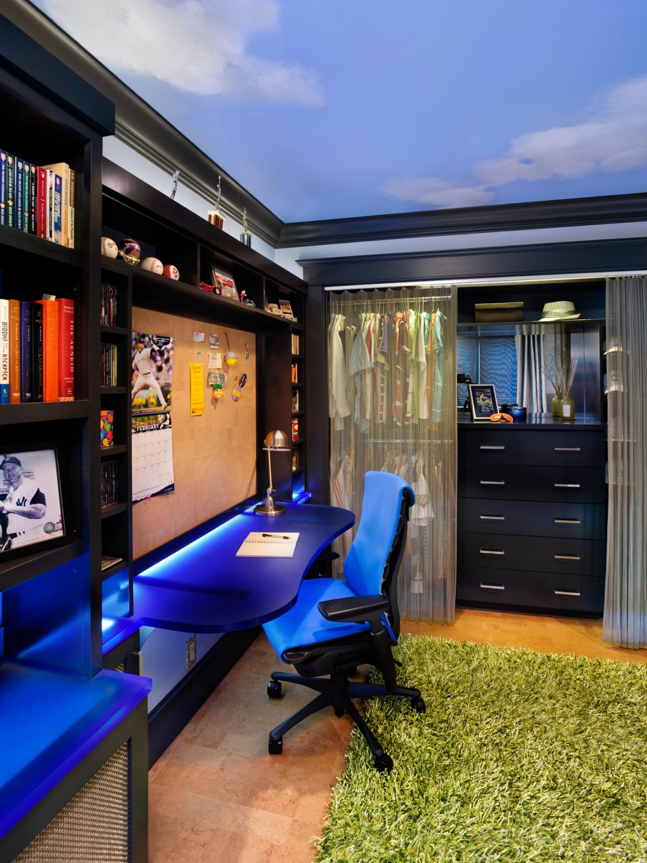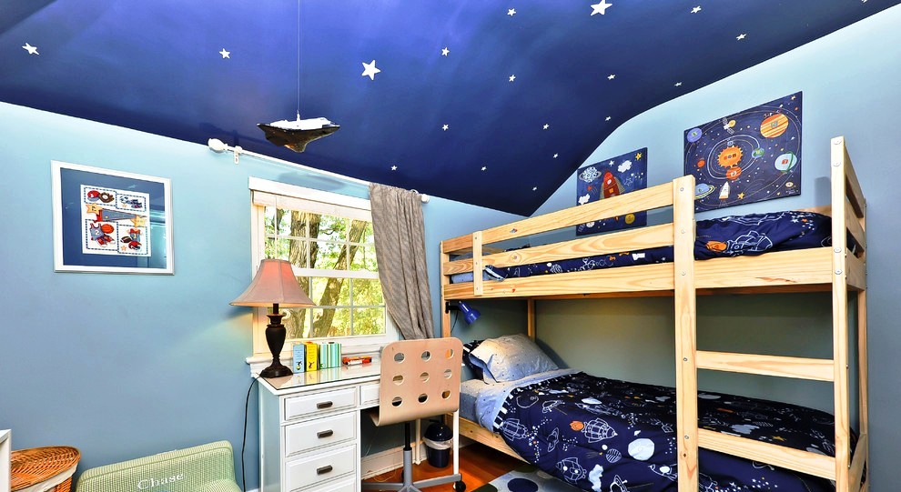 The starry sky on the ceiling will appeal not only to the student, but also attract the attention of the baby.