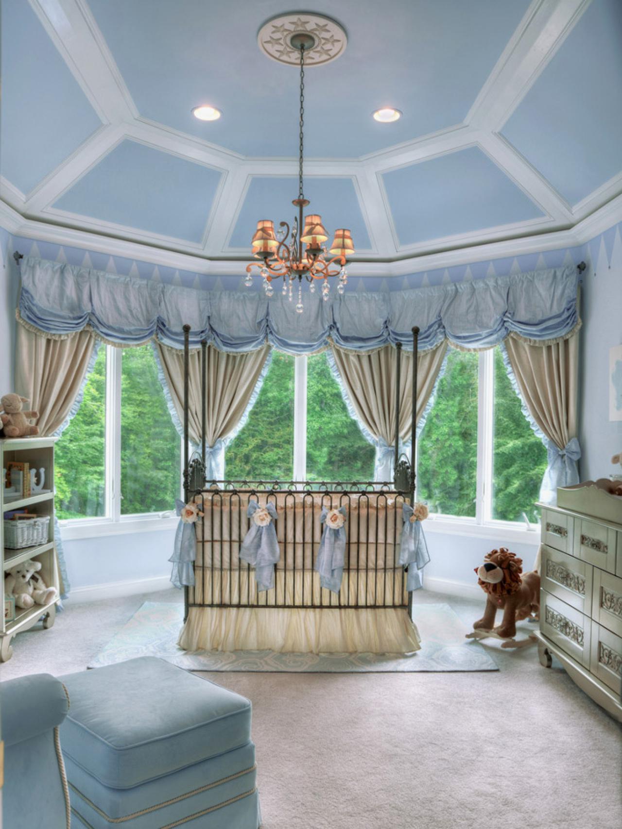 The ceiling in the nursery should be strong, as the child can throw a ball and other toys at him.