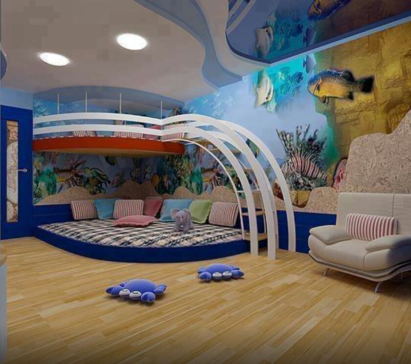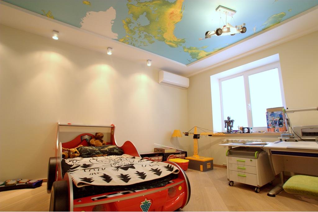 Younger children fit ceilings with photo printing. They will help to plunge into the fantastic world of princesses, ships, space.